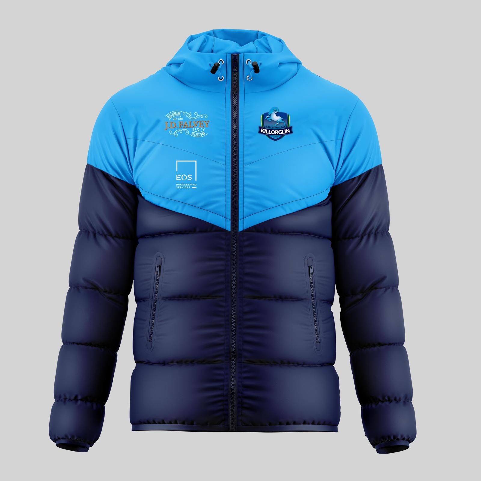 SelectOur latest item to our club shop. This puffy jacket with hood is very warm, windproof and can take a considerable amount of rain! The ideal jacket for any Killorglin RFC supporter.